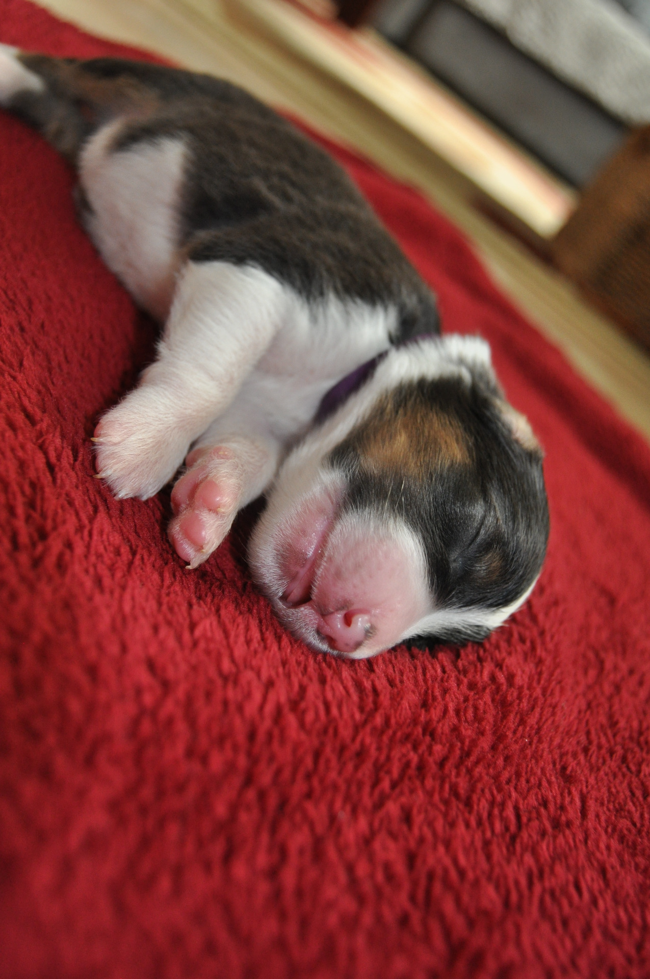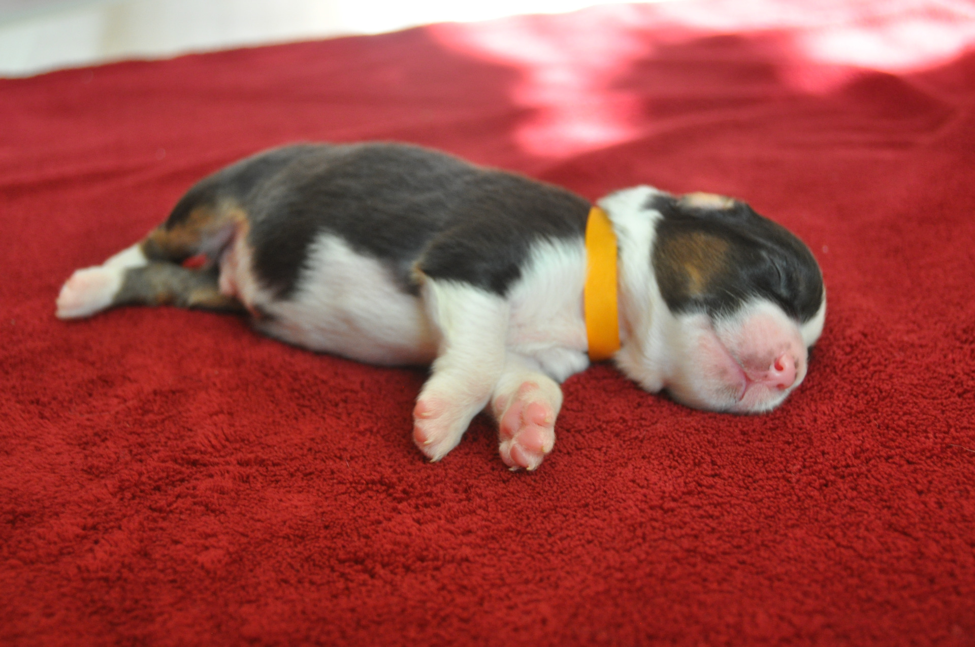 Holčička, black trikolor, standardní, narozena s dlouhým ocáskem, nekupírovaná.